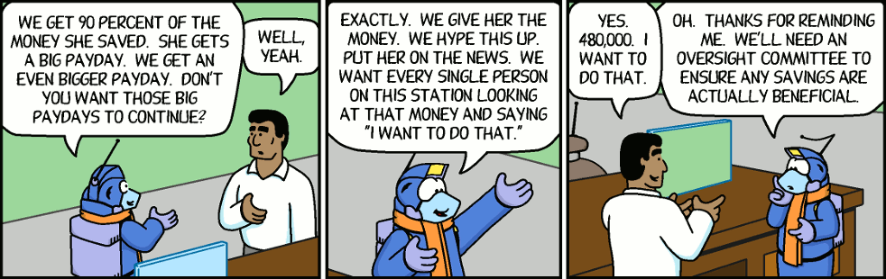 Sam: Oh. Thanks for reminding me. We'll need an oversight committee to ensure any savings are actually beneficial.