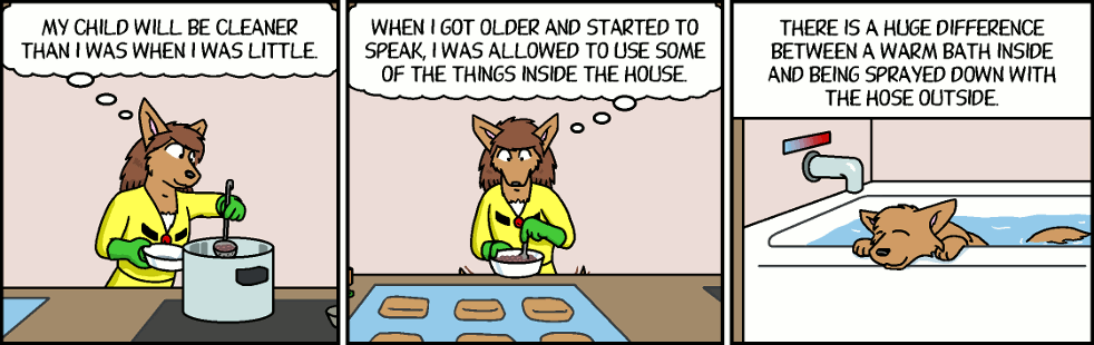 Florence (thinking): My child will be cleaner than I was when I was little.