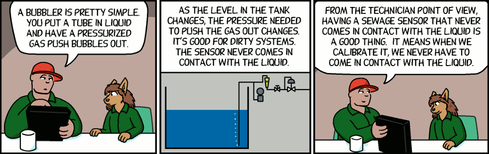 Capp: As the level in the tank changes, the pressure needed to push the gas out changes. It's good for dirty systems. The sensor never comes in contact with the liquid.